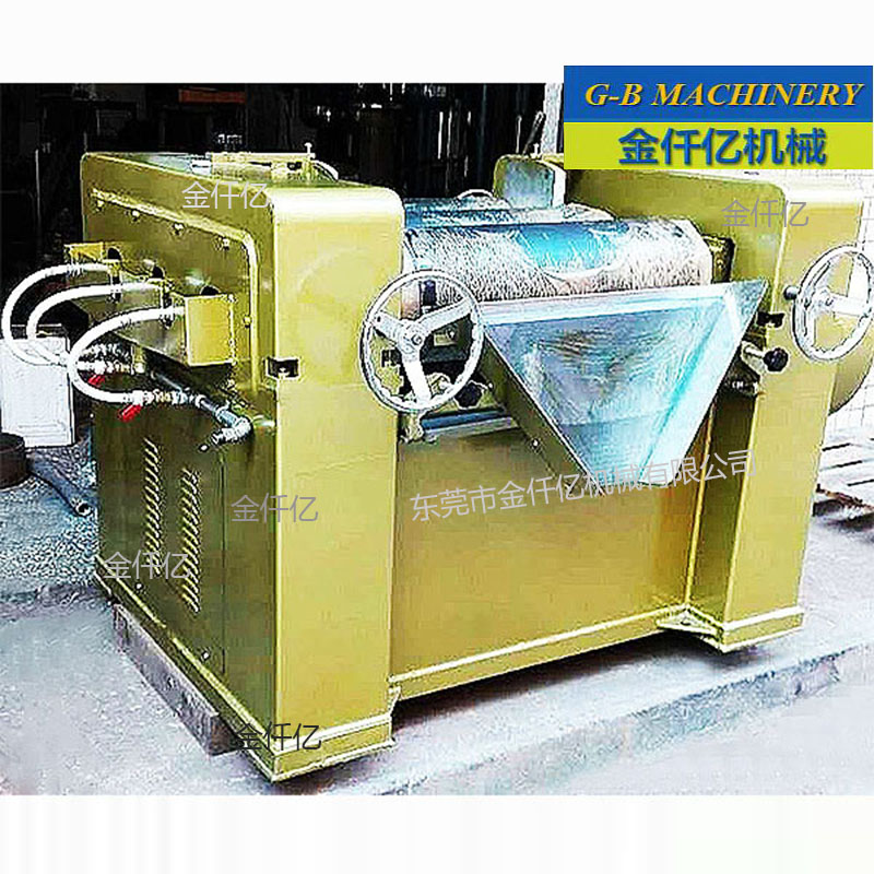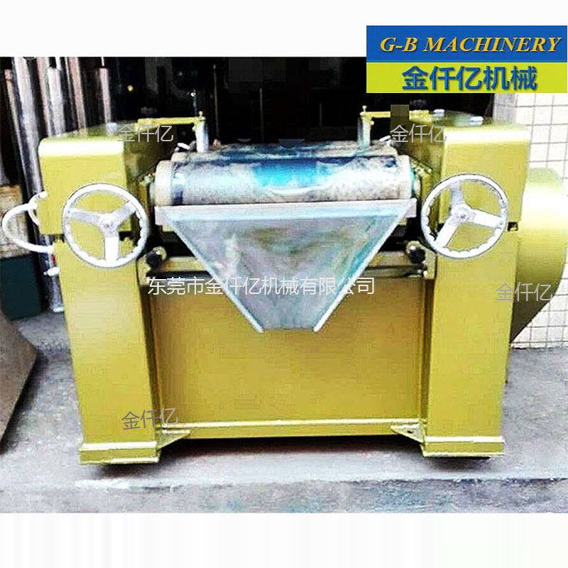 三輥研磨機是高粘度物料有效的研磨、分散設備。適用于多品種,易換色。  三輥研磨機主要用于各種油漆、油墨、顏料、塑料等漿料。特別適用于研磨分散粘度高而粒度要求細的產品。輥筒采用冷硬合金鑄鐵離心澆注,晶相緊密,強度高,表面硬度高具有耐磨性,并設有冷卻系統。